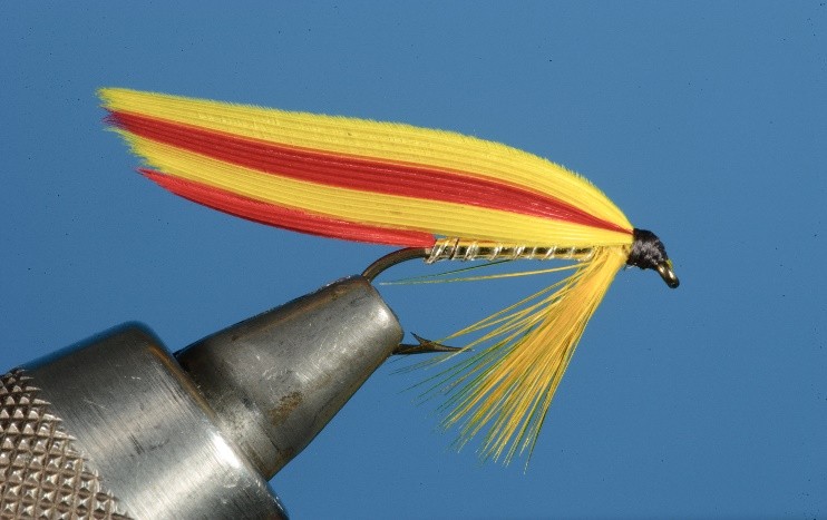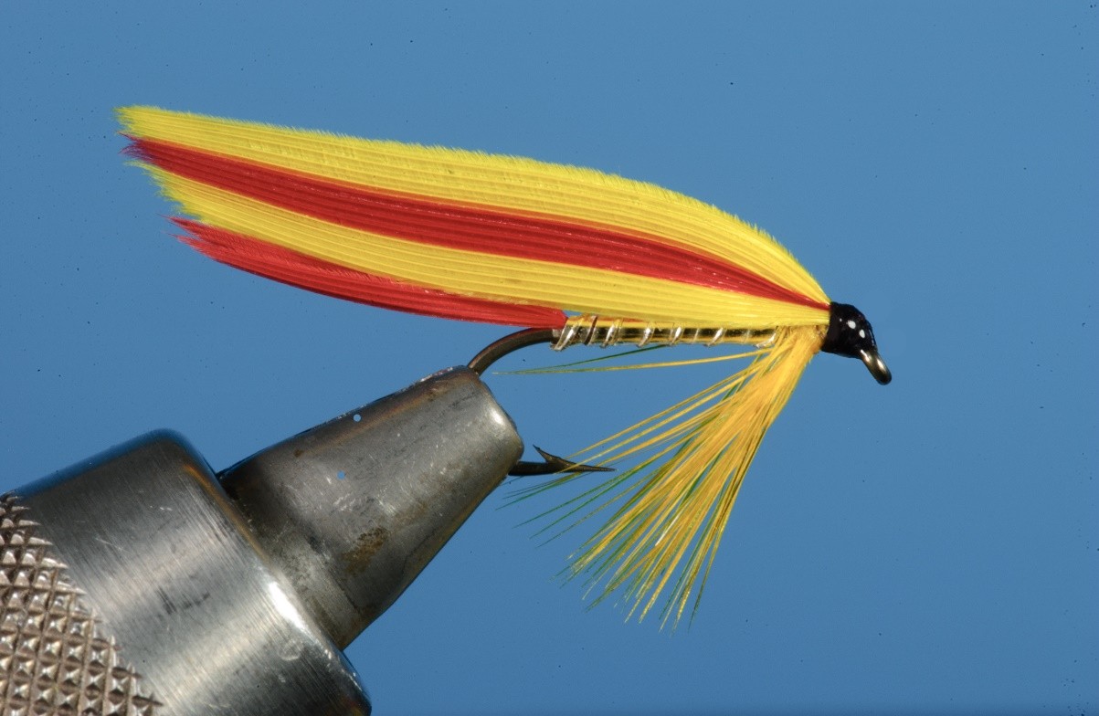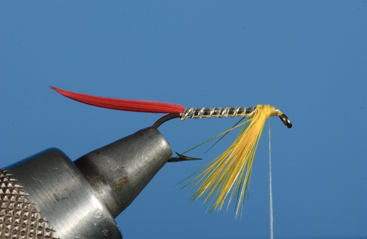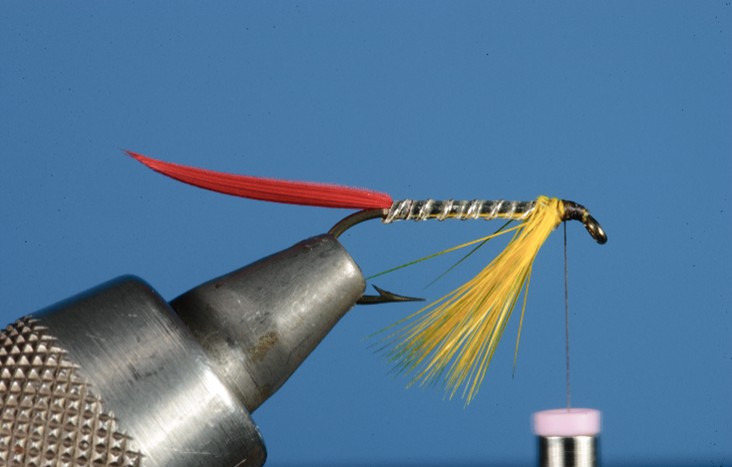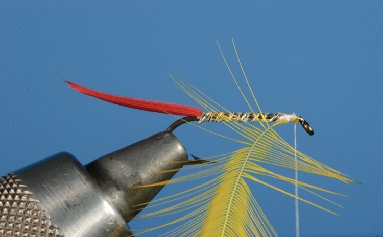 Throat: A yellow hackle tied in as a beard