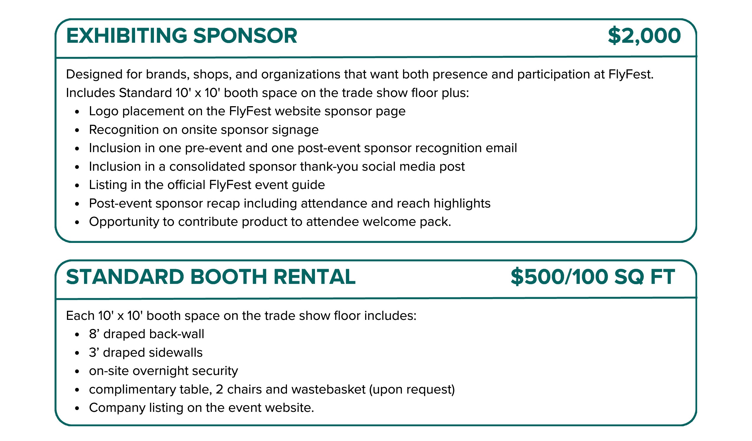 Keep in mind that exhibitor space is limited, and booth locations will be assigned on a first-come basis. Brands looking to be part of a focused, highly engaged fly-fishing audience are encouraged to secure their space early. FlyFest 2026 is a weekend the fly-fishing community will be talking about. Don't miss out!